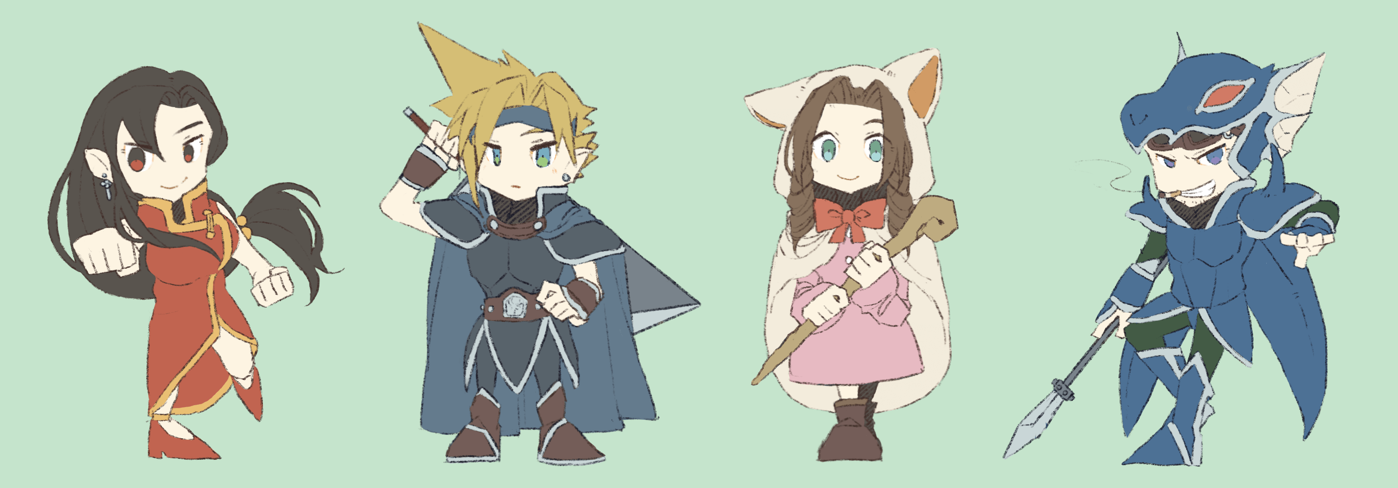 このシリーズはジョブ専用衣装みたいなのがなかったけど、7キャラに当てはめると多分こういう感じだろうという感じで着せてみた絵