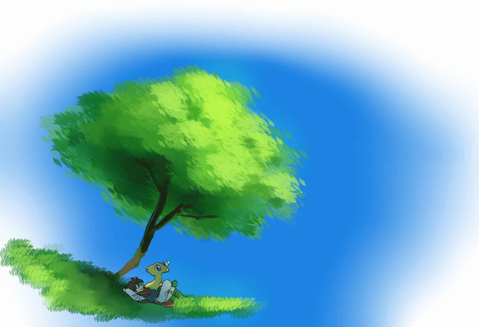 木の麓でひとやすみのバッツとボコ