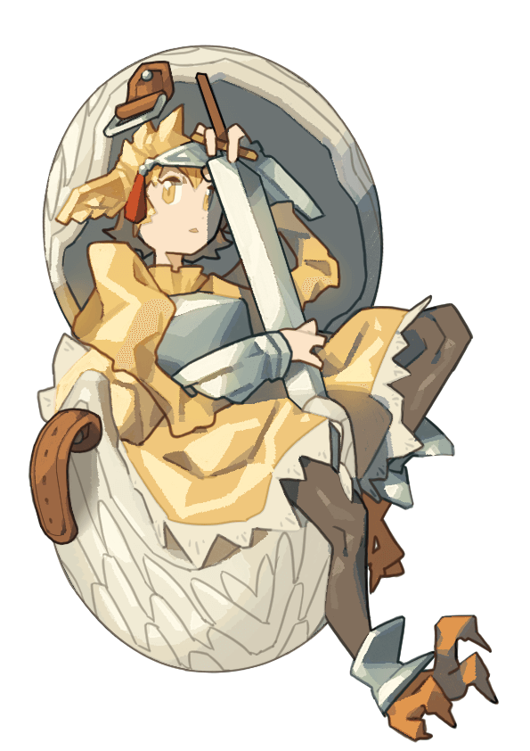 卵の殻っぽいのを盾にしたり。実はオスなので成長するとガタイの良い強いにわとり(セキショクヤケイ)になります。まだ形になってないけど