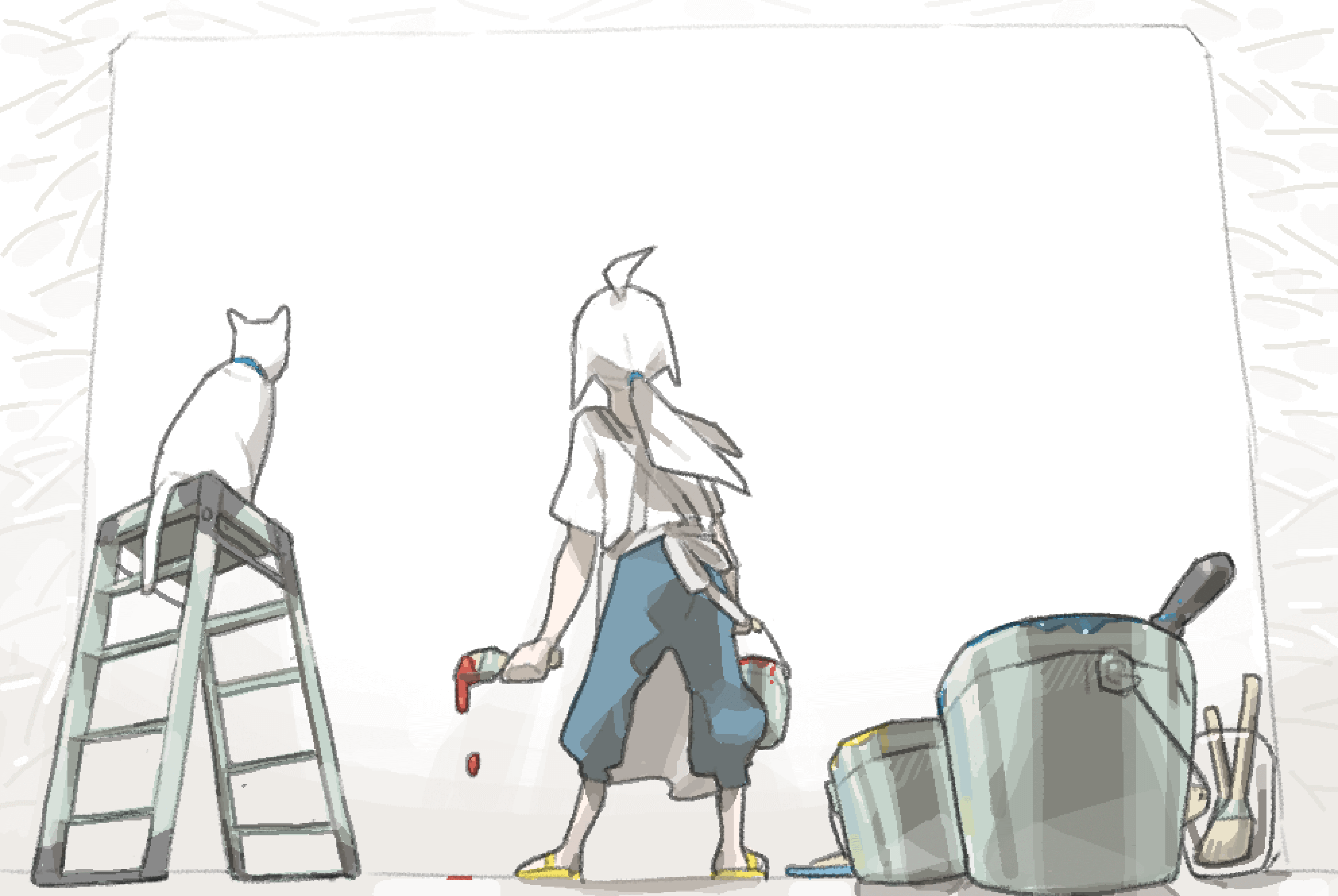これから何色に染めようかなあみたいな絵。白から始まる無限の世界